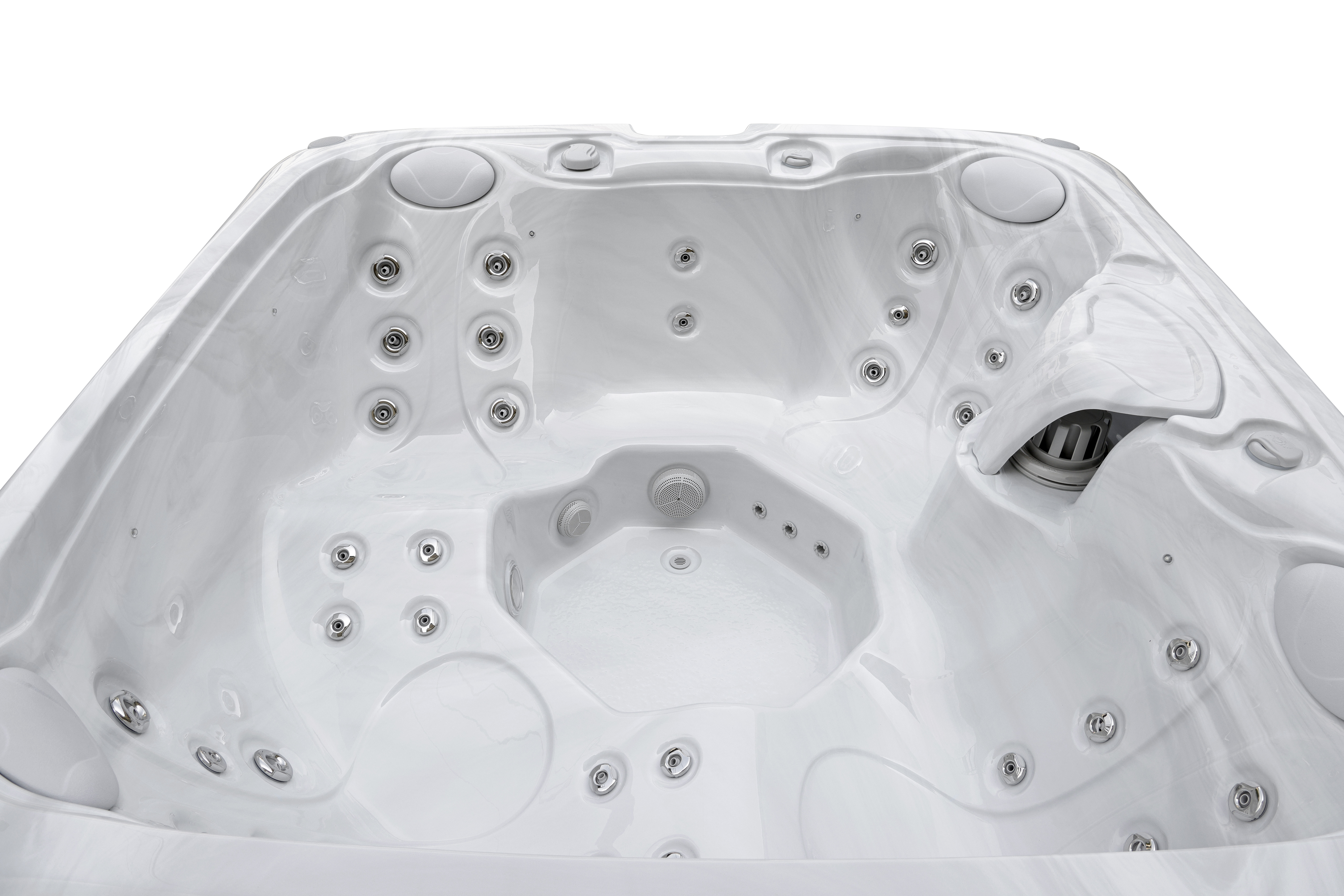 Lodur оснащен 37 воздушно-водяными форсунками, которые обеспечивают targeted массаж ключевых зон и глубокое расслабление мышц. Продуманная эргономика с четырьмя подголовниками создает комфортные условия для отдыха компании до пяти человек.