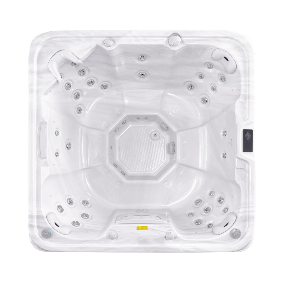 NordicSpa Sif с размером чаши 2,0 x 2,0 м идеально подходит для установки как в помещении, так и на улице. Просторная квадратная чаша с четырьмя эргономичными подголовниками комфортно вмещает до семи человек, создавая условия для полноценного отдыха и общения.